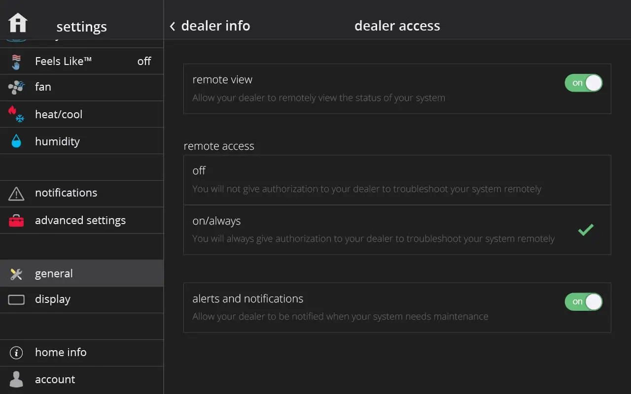 Step-by-step guide to enable remote dealer access for system diagnostics and support.